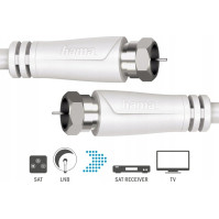 Propojovací SAT kabel Hama 205063 v bílé barvě s délkou 1,5 m je určen pro přenos zvukových a obrazových signálů, například mezi zásuvkou antény, satelitním přijímačem a televizorem.