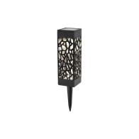 Lucerna - elektrická, plastová, venkovní, černá barva, moderní, zapichovací, napájení solární energií, zdroj světla žárovka, barevná teplota světla teplá bílá, stupeň krytí IP23, rozměry 18 × 6 × 6 cm (V׊×H), 1 kus v balení
