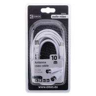 Anténní koaxiální kabel s vidlicí a zásuvkou IEC. Kabel má dvojité stínění pro redukci elektromagnetického rušení. Délka kabelu je 10 m. Koaxiální kabel je vhodný pro SAT, DVB-T, ANT, DECODER, FLAT TV a TV. Dvojité stínění.