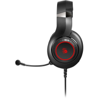 Herní sluchátka - drátová, s mikrofonem, přes hlavu, na uši, uzavřená konstrukce, 3,5 mm Jack, pro PC, PlayStation 4 a Xbox Series, frekvenční rozsah 20-20000 Hz, citlivost 112 dB/mW, impedance 32 Ohm, měnič 50 mm, kabel 2,2 m.