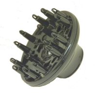 Fén na vlasy s difuzérem – maximální příkon 2000 W, 3 úrovně teploty a 2 rychlosti proudění vzduchu. Součástí je úzký koncentrátor pro přesný styling, poutko pro zavěšení a funkce foukání studeného vzduchu pro zafixování účesu. Odnímatelná zadní mřížka usnadňuje čištění a údržbu zařízení.