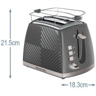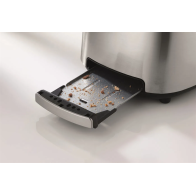 Topinkovač -, možnost opečení celého krajíce, regulace opékání, rozmrazování, tlačítko okamžitého ukončení a rozpékač, součástí vyjímatelná miska na drobky a nástavec na rozpékání pečiva, příkon 1500 W, materiál nerez, barva stříbrná