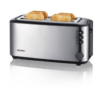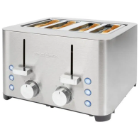 Topinkovač - na 4 topinky, regulace opékání, opětovný ohřev, rozmrazování, pojistka proti vzpříčení chleba, světelná signalizace a rozpékač, součástí vyjímatelná miska na drobky, příkon 1400 W, materiál nerez, barva stříbrná