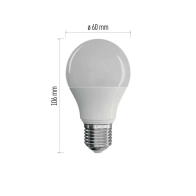 LED žárovka EMOS ZQ5121 typu Classic A60 je vybavena paticí E27 a má příkon 5,2 W, což odpovídá klasické 40W žárovce. Poskytuje světelný tok 470 lumenů a svítí v neutrálně bílé barvě.