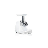 Elektrický mlýnek na maso, příkon 1200 W, gumové nožičky, samoostřící nůž a zpětný chod, na krájení, strouhání, plnění párků a klobás a mletí, 1 rychlost, rychlost zpracování masa 0,6 kg/min, hrubost mletí 3, 5 a 8 mm, velikost mlýnku 30, materiál plast, rozměry 39 × 25 × 33 cm (V׊×H), hmotnost 3,9 kg, bílá barva.