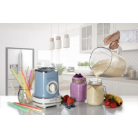 Šetří váš čas S mixérem SM3500 ušetříte spousty času v kuchyni. Je osazen motorem s výkonem 1300 W, díky kterému dosahuje rychlosti 26 000 otáček za minutu. Šest vysoce odolných sekacích nožů se postará o jemnou konzistenci připravovaných nápojů i jídel. Rychlost mixování můžete plynule regulovat pomocí otočného tlačítka. Skleněná nádoba 1,8 l Nádoba mixéru poskytuje dostatečně velký objem 1,8 l, takže v ní pohodlně připravíte nápoje pro celou rodinu. Je zpracovaná z kvalitního skla, které je odolné vůči vysokým teplotám a nezachycuje pachy ani chutě. Přednastavené programy Mixér SM3500 se velice snadno a intuitivně ovládá díky třem přednastaveným funkcím: SMOOTHIE pro přípravu lahodných ovocných a zeleninových nápojů plných vitamínů; ICE CRUSH pro drcení ledu a AUTO CLEAN pro snadné a rychlé čištění spotřebiče. Filtr na zrníčka Pro váš maximální požitek z domácího smoothie nápoje je mixér vybaven chytře vymyšleným filtrem na zachytávání zrníček. Vkládá se přímo do nádoby mixéru a během mixování oddělí i ta nejjemnější zrníčka z ovoce jako jsou jahody, kiwi, maliny apod., které by bez použití tohoto filtru zůstaly ve vašem nápoji. Kvalitní a bezpečné zpracování Mixér je vybaven ochranou proti přehřátí a bezpečnostní pojistkou, díky které máte jistotou, že se vám omylem nespustí bez správně usazené nádoby a víka. Je opatřen protiskluzovou ochranou pro maximální stabilitu během práce. Součástí víka je integrovaná odměrka. Po jejím vyjmutí získáte otvor, kterým můžete doplnit suroviny v okamžiku, kdy je mixér vypnutý, aniž byste museli odejmout celé víko.