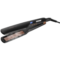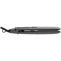 Žehlička na vlasy - keramický povrch destiček, rozsah teploty od 80 do 220 °C, rychlonahřívání, automatické vypnutí, plovoucí žehlící desky, regulace teploty, světelná signalizace, vhodná i pro tvorbu vln, bez displeje, příkon 43 W, délka přívodního kabelu 1,65 m, šedá barva, bezpečnostní zámek, flexibilní kabel a plovoucí žehlicí desky, síťové napájení
