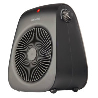 Teplovzdušný ventilátor - elektrický, volně stojící, vhodný do interiéru, příkon 1500 W, topný výkon 1500 W, 2 stupně výkonu, mechanické ovládání, ochrana proti přehřátí, spínač naklonění, termostat, kontrolka provozu, rukojeť a ventilátor součástí, regulace teploty, materiál plast, šedá barva, rozměry 27,4 × 19 × 16 cm (V׊×H)