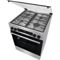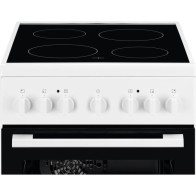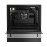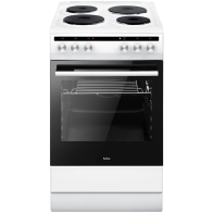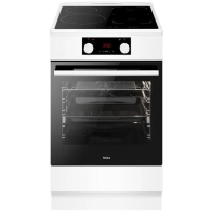 Sporák - elektrický, sklokeramická varná deska, energetická třída A, rozměry 85 × 50 × 60 cm (V׊×H), 4 plotýnky, VARNÁ DESKA: ukazatel zbytkového tepla, ovládání pomocí otočných knoflíků, TROUBA: chladná dvířka trouby a tlumené dovírání dvířek, programy trouby rychlé předehřátí, gril, horní ohřev, spodní ohřev, rozmrazování, ventilátor, pravý horký vzduch a parní pečení, stříbrná barva